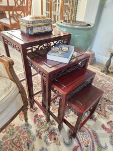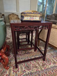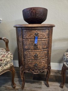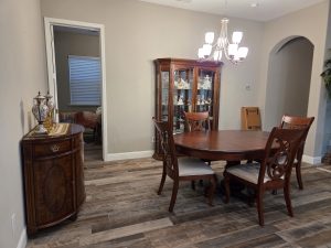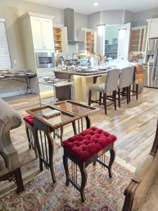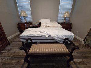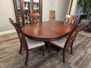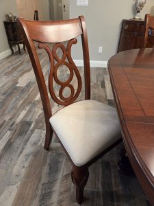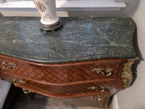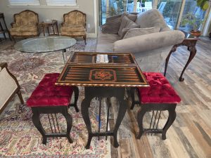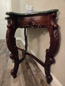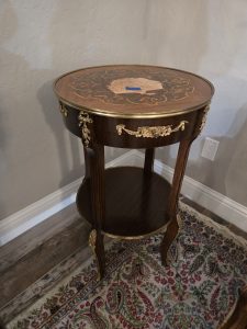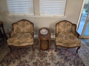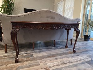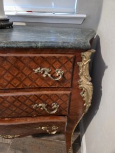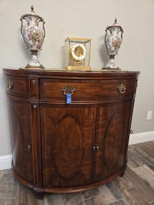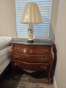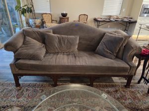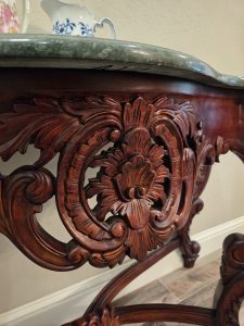 Kindel Dining table 8 Chairs and matching sideboard/buffet, also by Kindel. Another more casual dining table and 4 chairs from Legacy Classics furniture. A *gorgeous* 72" wide mirrored credenza by Hooker Furniture, a sleek glass and acrylic coffee table, and practically new microsuede sofa with carved base and leg detail. 3 new/like new mattresses in Full, Queen, and Cal King. Antique, heirloom arm chairs in well-cared for condition. Elegant, high quality solid wood furniture throughout the estate. Don't miss the green marble topped Louis XV Dutch Checkerboard marquetry bedroom set - photos are beautiful and still don't do justice to the quality of the pieces.