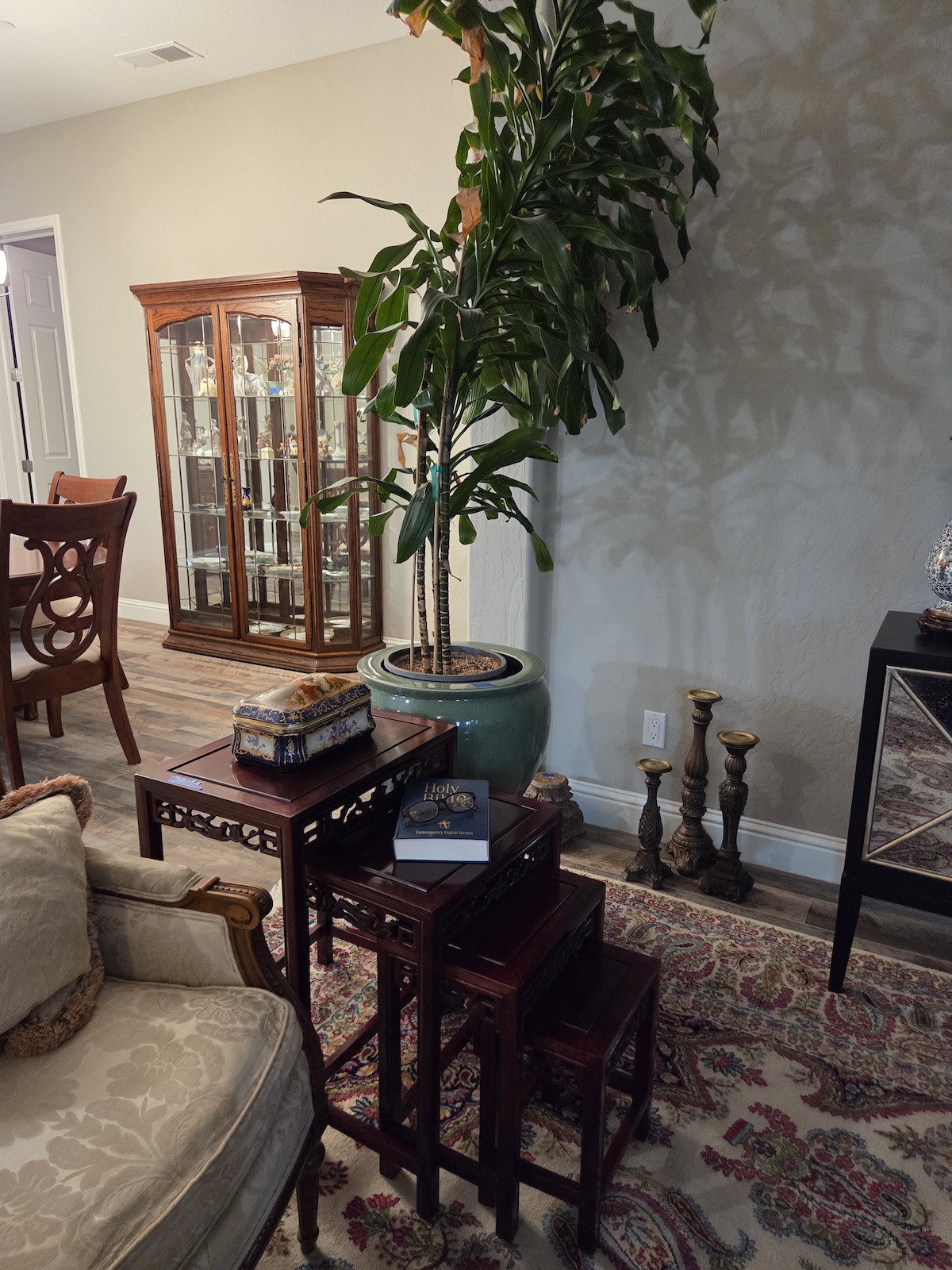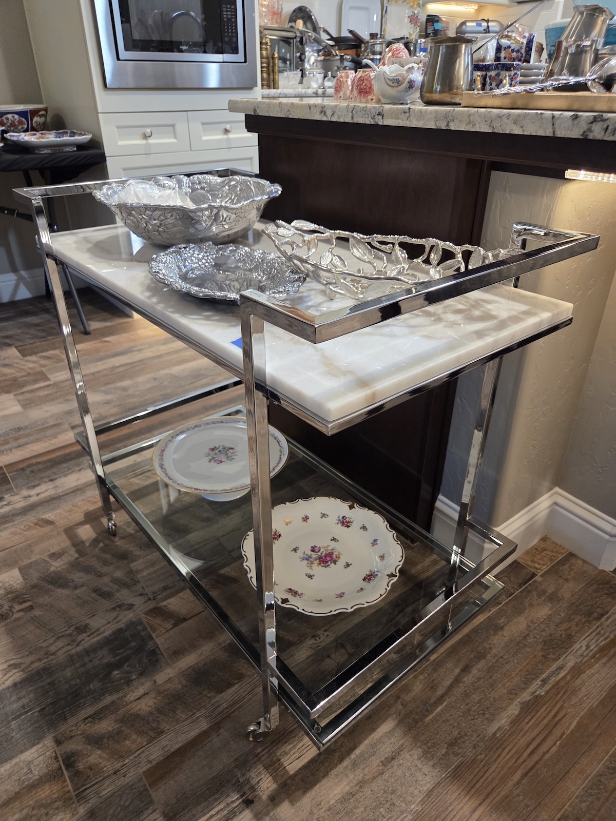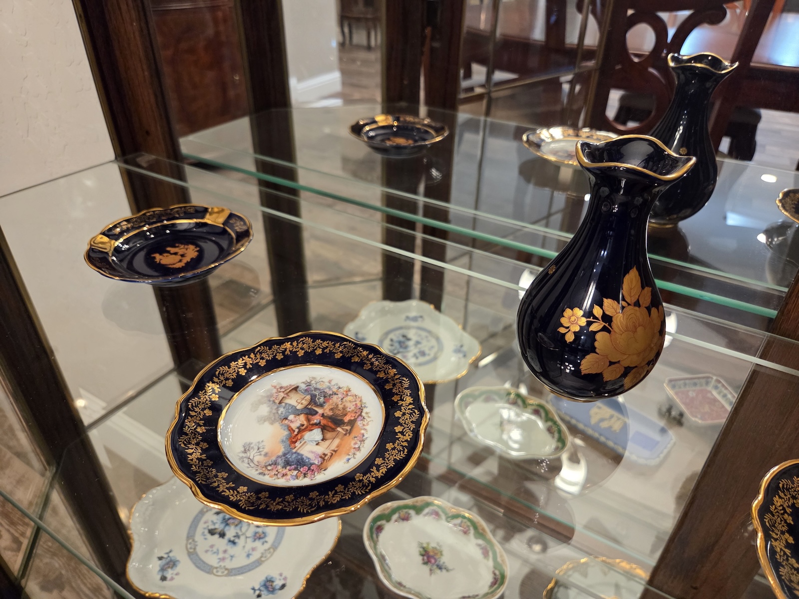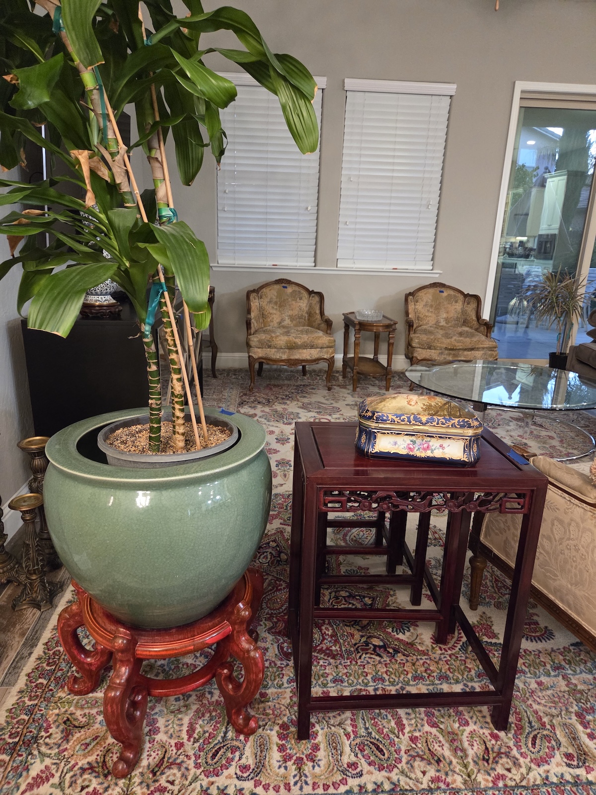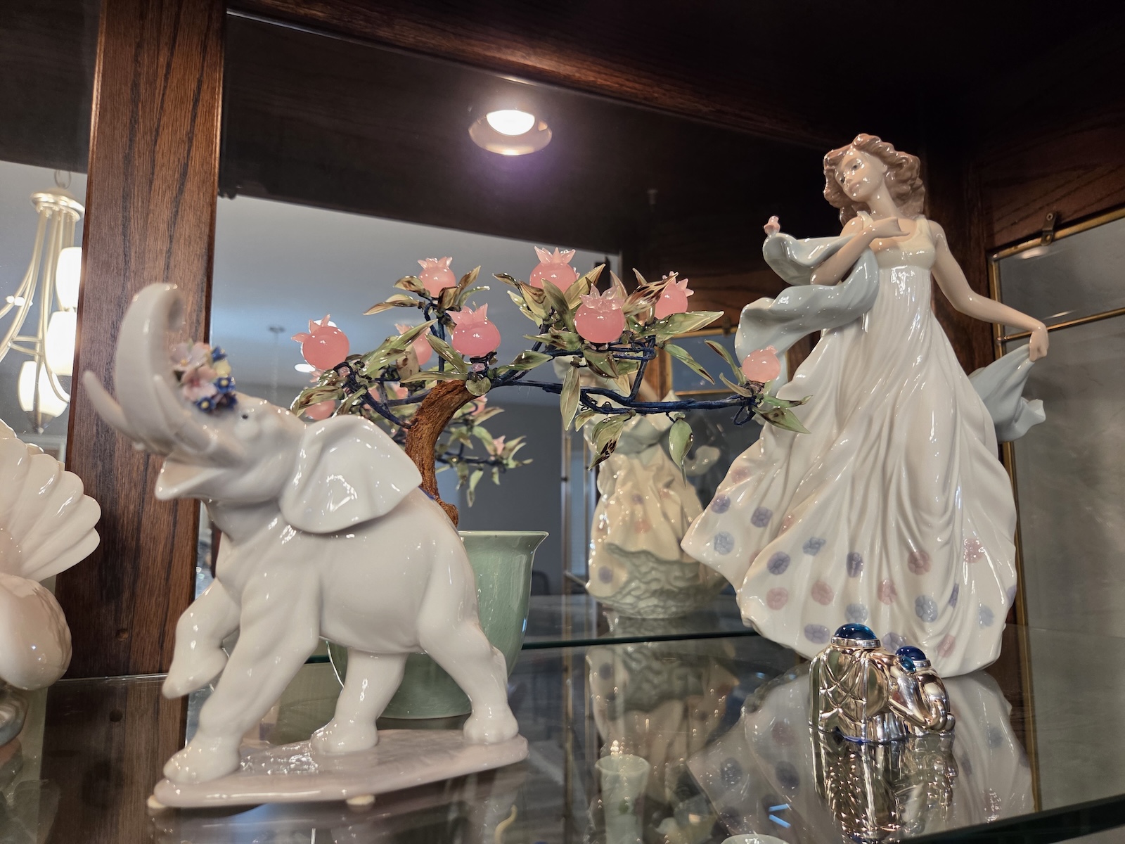 Cooking and serving items from Royal Albert, Wedgewood bone china, Mikasa, KitchenAid 5 q stand mixer and other KitchenAid appliances, Lenox, Arthur Court, multiple Armenian coffee sets and brewing utensils, Nambe, Christofel flatware, Mariposa, L'objet, dozens of utensils from desired brands. And a handsome collection of Asian serveware. Decor items from Limoges France, Lladro, Hummel, many lead crystal serving pieces, Marquis by Waterford, Fenton glass. Pieces from Michael Aram, Large mature plants in stately, sturdy pots.