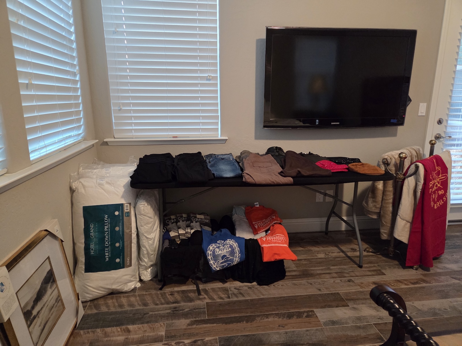 Many, many cleaning supplies, household goods, and useful items to pick through in the garage. There's a roll-away futon, a GIANT Christmas tree, and dozens of books celebrating the rich history of Armenia.