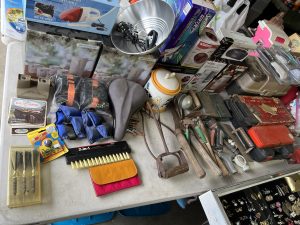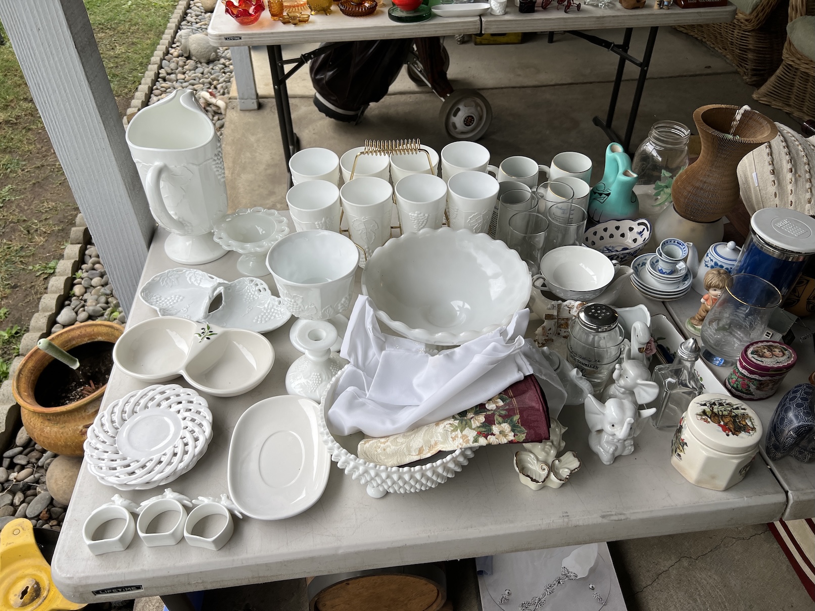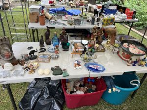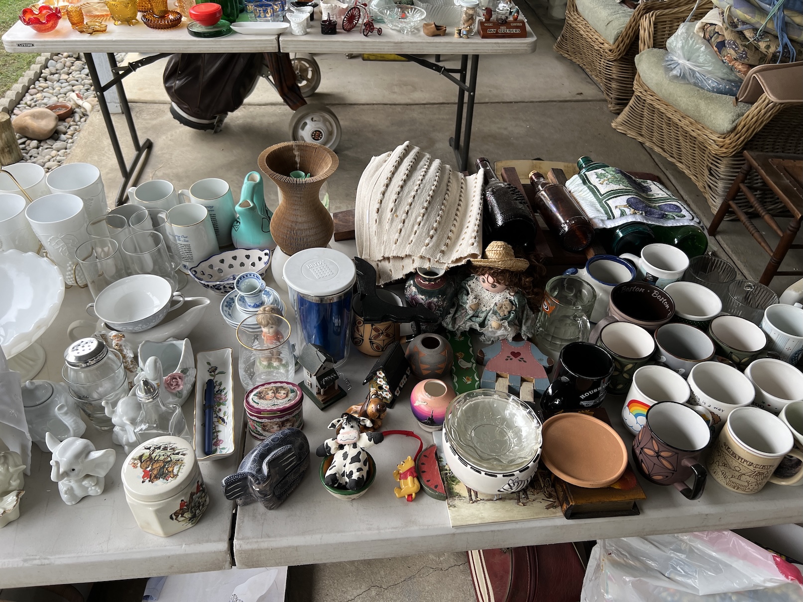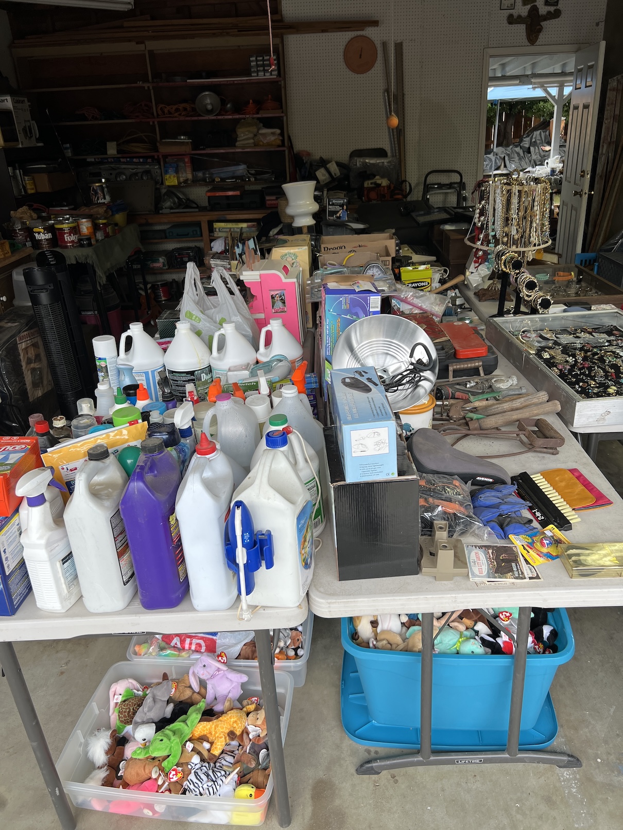 Join us for a 3 day sale! This house is packed… Sale includes: Outdoor seating, yard tools, racks, lots of yard decor, Vintage Atari system and games, garage full of tools and other garage stuff, mid-century hutch, signed lithographs, tons of kitchen and household goods, knick-knacks, vintage chairs, leather couch in great condition, tons of costume jewelry, vintage toys and dolls including a Furby & princess Di beanie baby, shark vacuum, Disney 45s, clothing, vintage chairs, household furniture, hutch, dining room table, bedroom furniture, Kenmore sewing machine, art, and more!