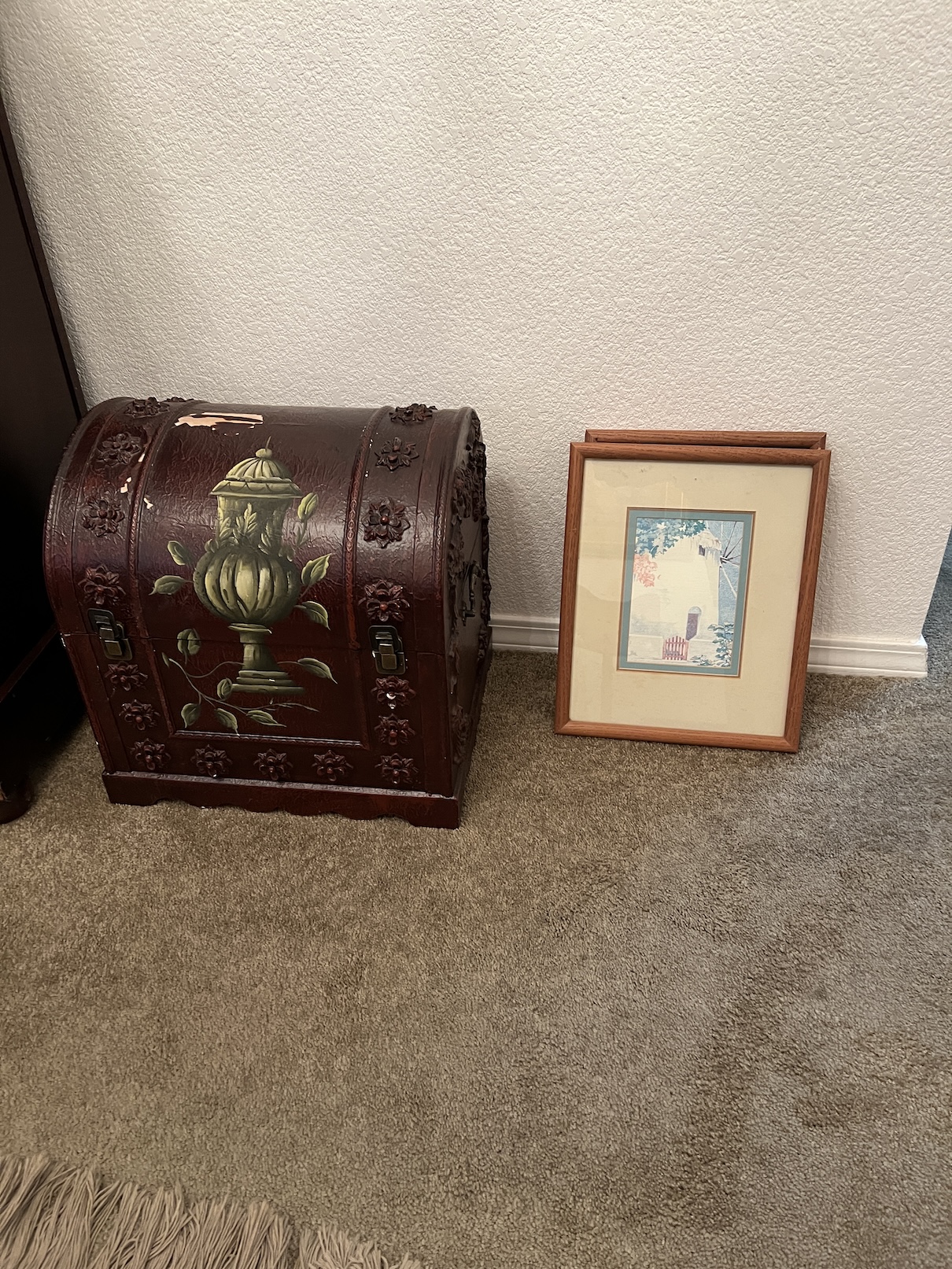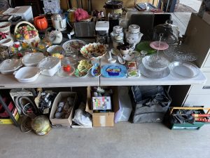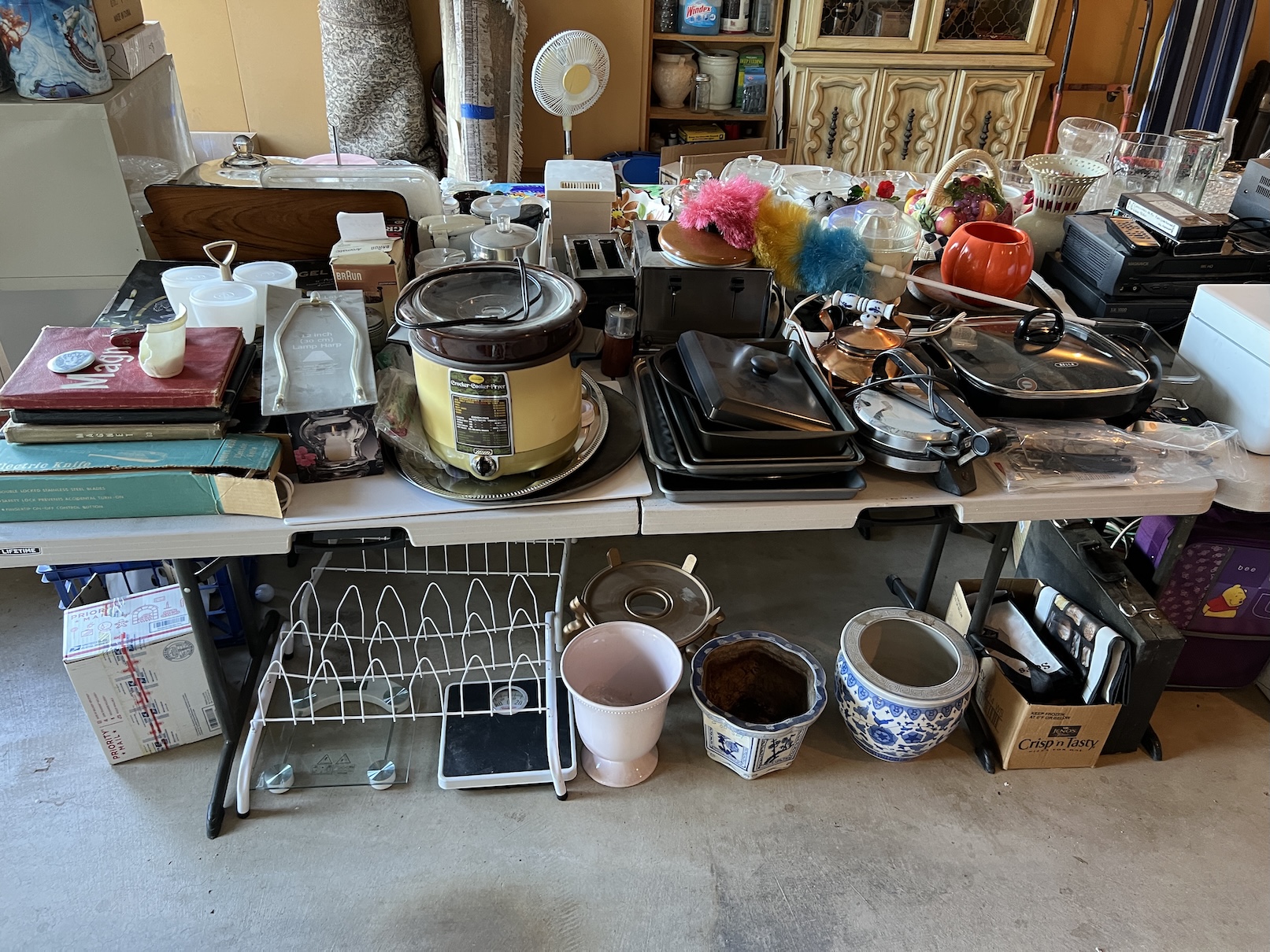 Join us Saturday October 11 for this ONE day sale! Including: household goods, some plants and yard decor, art, vintage cabinet, carved wooden chests, dining room table, corning ware, a washer and dryer and more!