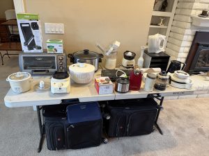 Join us this week for our sale featuring, Nikon cool pics P 100 camera, Shatz nautical clock and barometer, authentic Hawaiian shirts, beautiful teak dining set with teak buffet and display shelf, vintage Pyrex, lots of vintage PlaySkool items, books, tools, household goods, collectibles, some men’s clothing, military items USMC, new in box Roomba, BBQ, outdoor furniture, original oil paintings, LP washer and dryer, gun safe, art glass and lots more we are still unpacking…