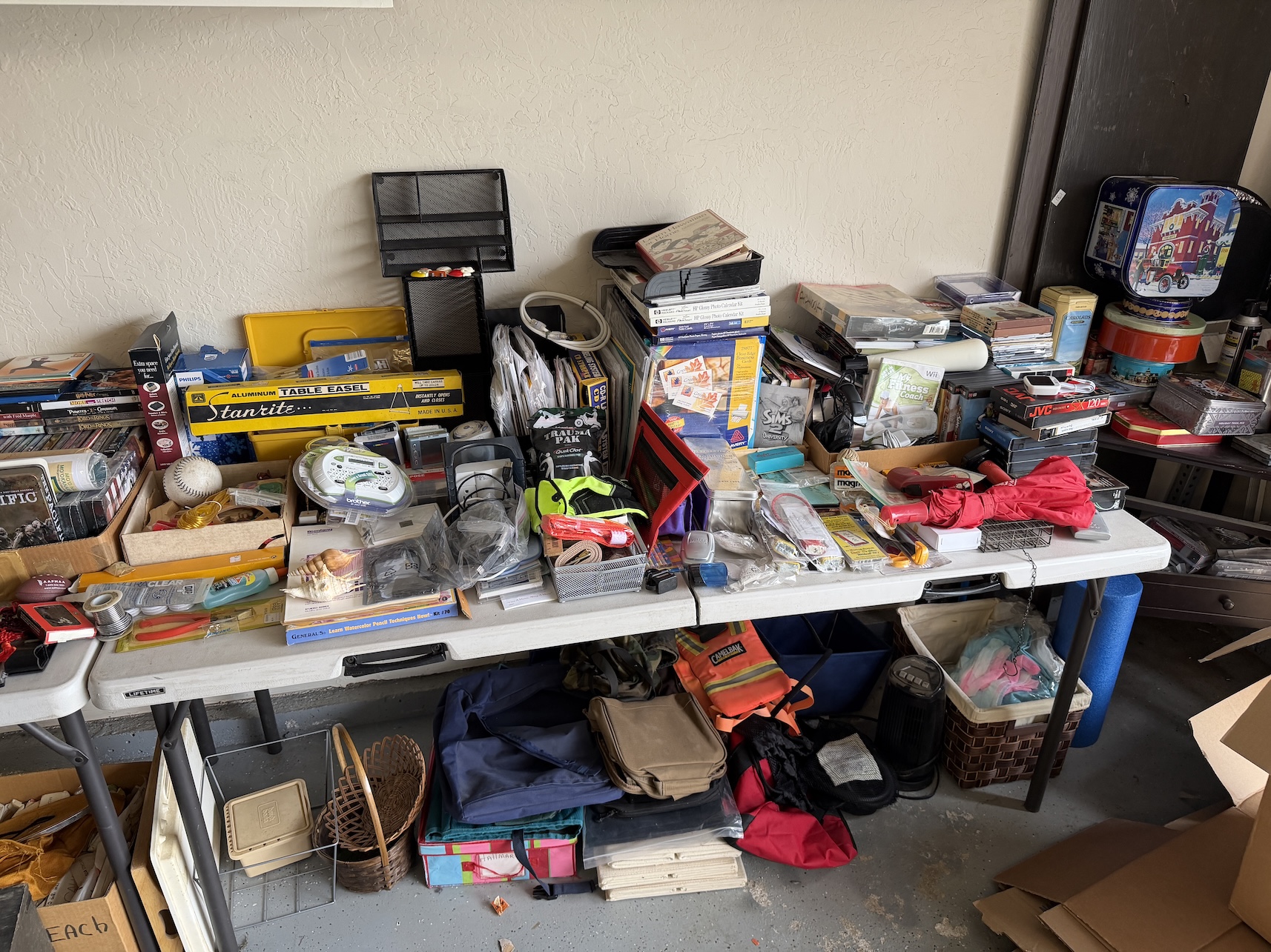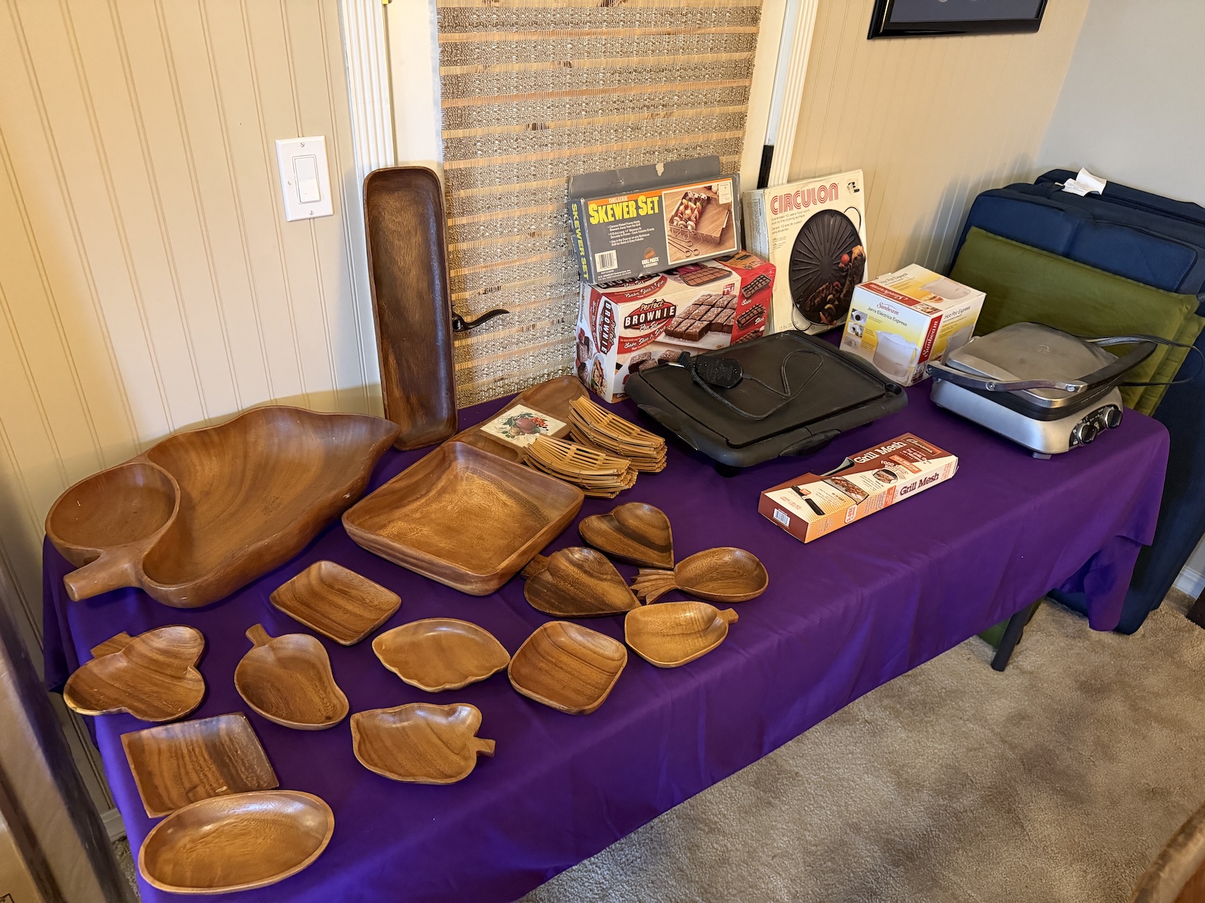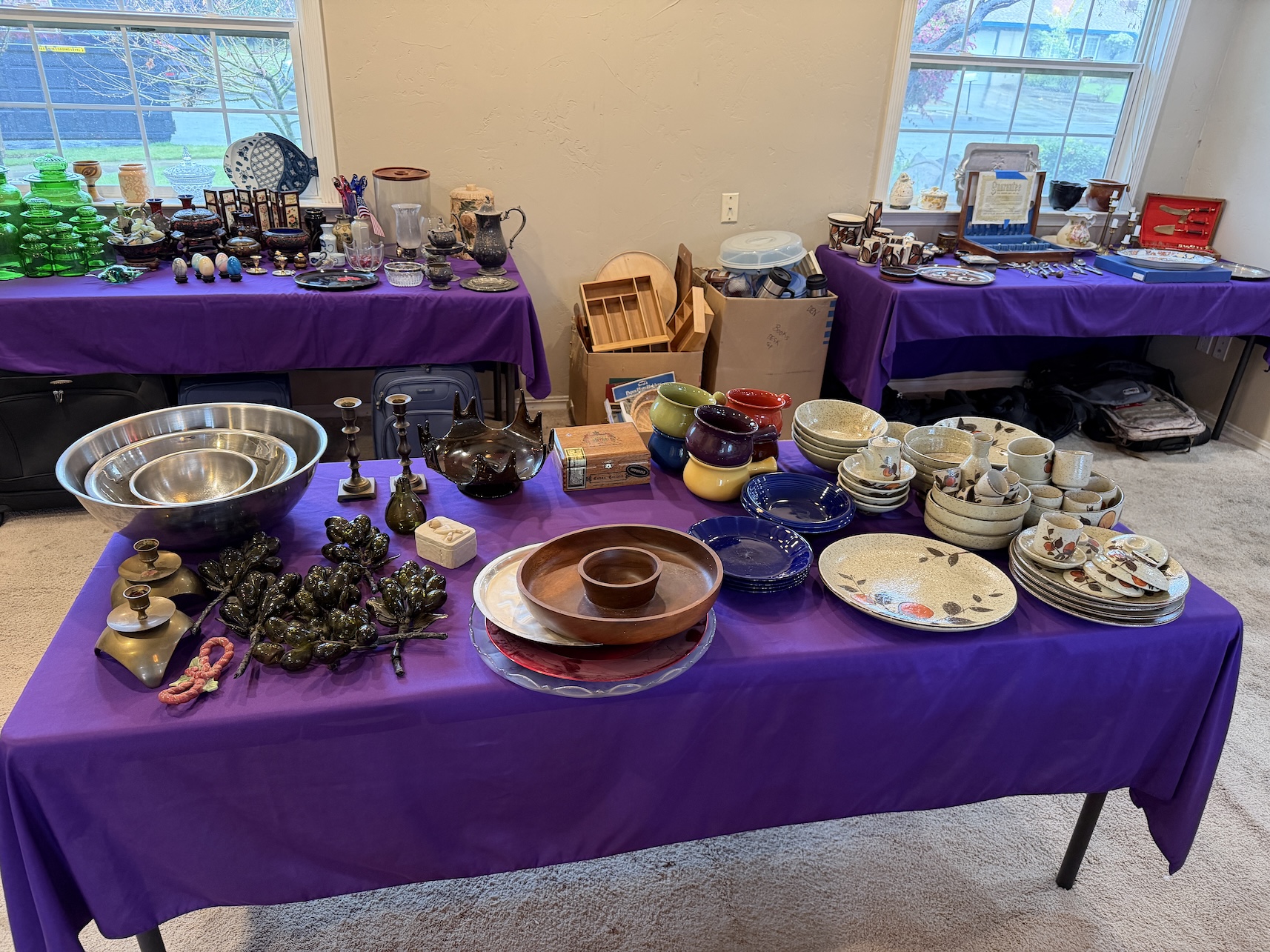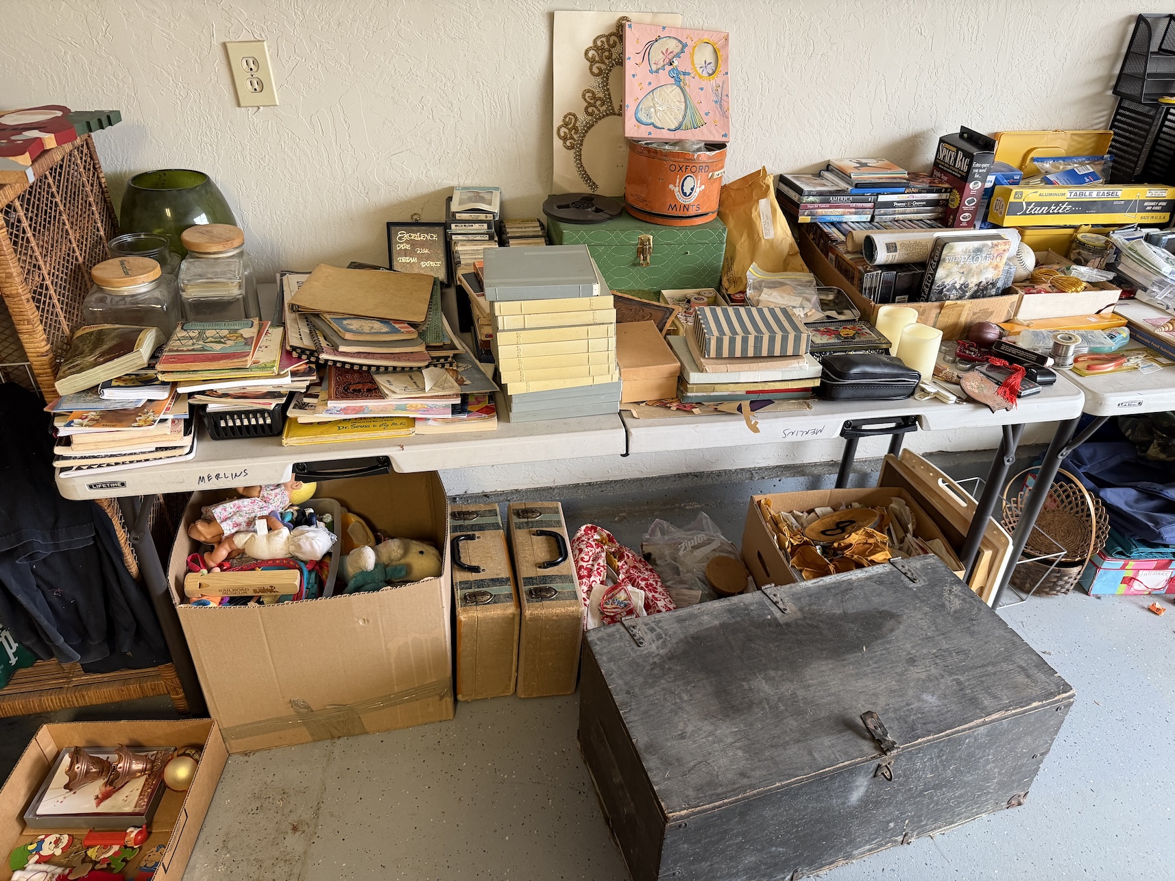 Join us this week for our sale featuring, Nikon cool pics P 100 camera, Shatz nautical clock and barometer, authentic Hawaiian shirts, beautiful teak dining set with teak buffet and display shelf, vintage Pyrex, lots of vintage PlaySkool items, books, tools, household goods, collectibles, some men’s clothing, military items USMC, new in box Roomba, BBQ, outdoor furniture, original oil paintings, LP washer and dryer, gun safe, art glass and lots more we are still unpacking…