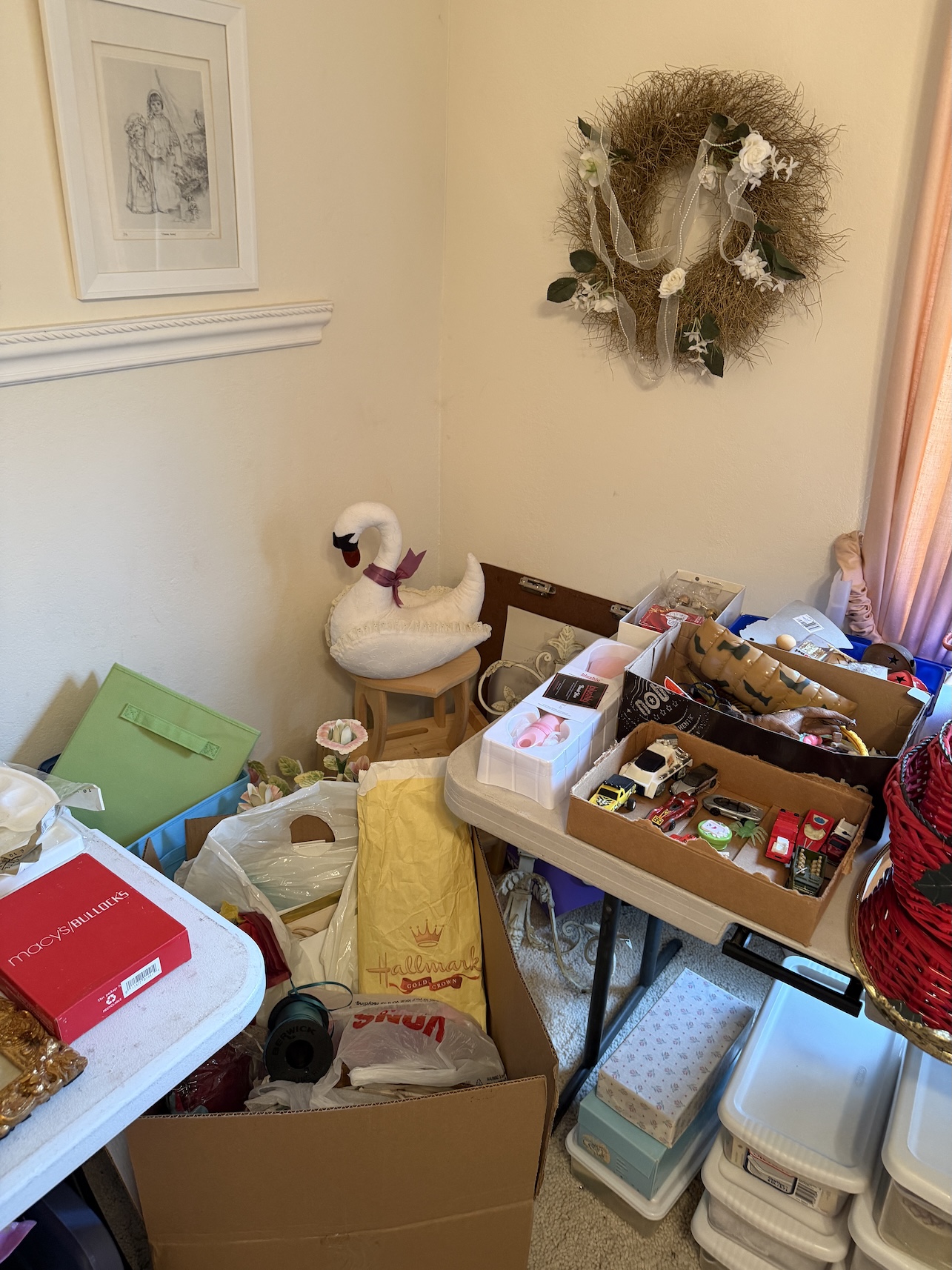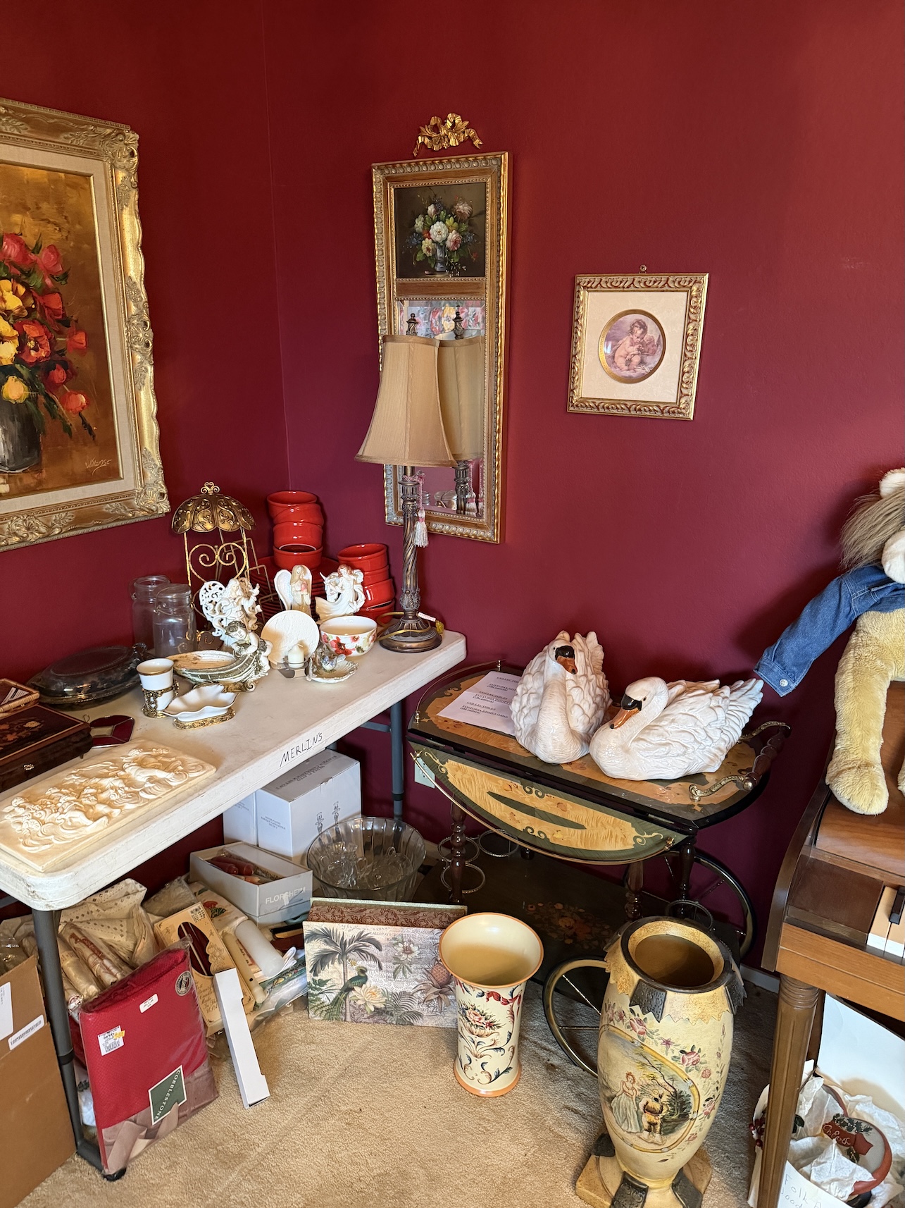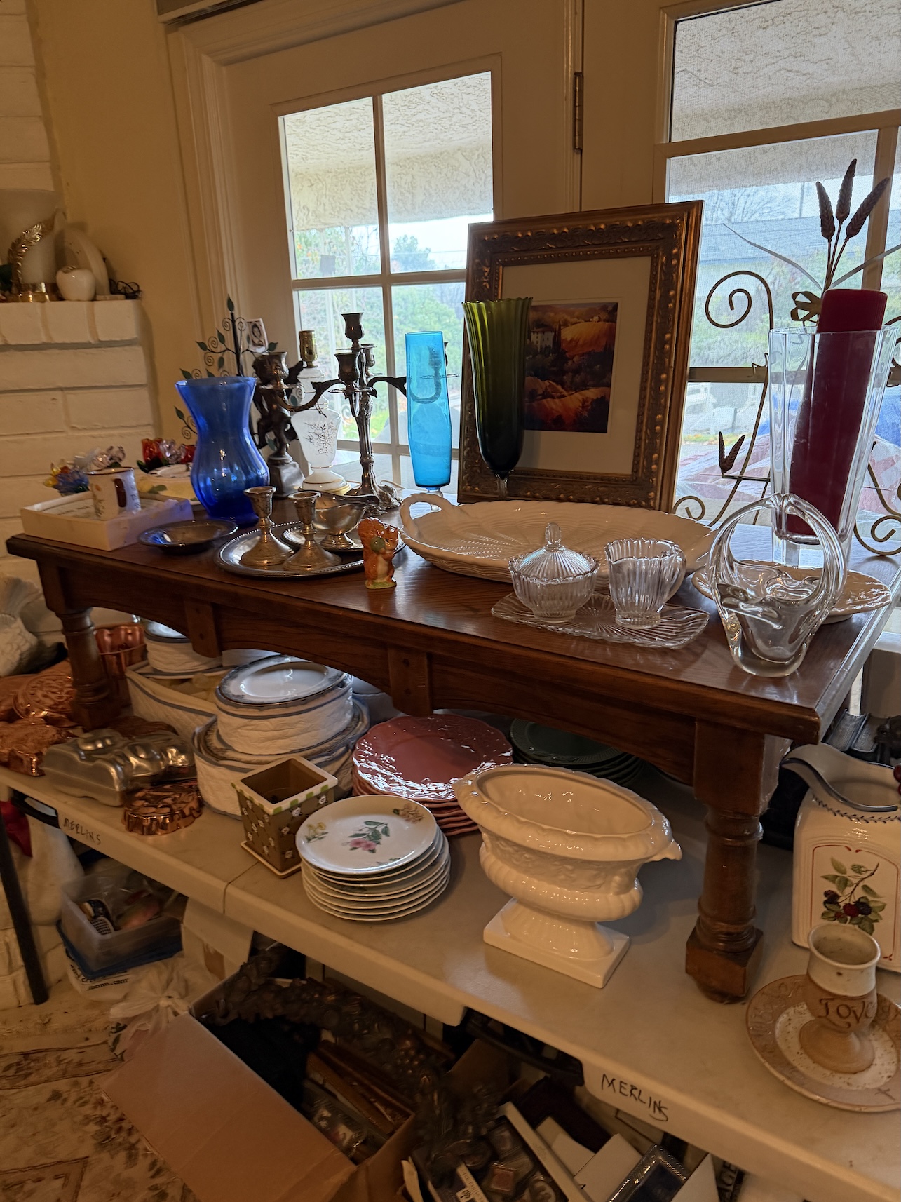 Items will be half off on the 2nd and 3rd day of this sale! Join us this Friday for a completely PACKED sale! Including 100s of women’s clothing items(small-medium, and some large) and shoes(women’s 7-8) new in package, washer and dryer, tons of dish ware, cabinets, art, decor, tons of Christmas priced to sell, vintage dolls, antique piano, vintage metal patio chairs, electric reclining chair, mirrors, linens, garage with some tools, so much stuff! Come to dig and have a great time!