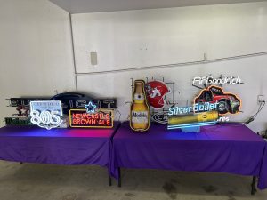 This weeks 2nd sale will knock your socks off beginning with a 14 foot metal giraffe sculpture that is being auctioned at merlins-auctions.com and the tag sale includes: a baker’s pride pizza over model gp51, perfect flame stainless steel bbq, dining set with lucite chairs, signed artwork, lucite desk, two 6 foot Christmas Soldiers, 6 foot pumpkin king, multiple neon advertising signs, two enormous urns, a number of patio sets with umbrellas, several vintage book sets, large model airplanes, designer leather couch and chaise lounge, vintage brass cash register, antique Burmese large wicker rice offering bowl and rice steamer, king and queen size beds, mid century furniture, large metal rooster, amazing large airplane painting, vintage table fan, bar stools, houseware and dining sets, Starbucks coffee cups, modern white leather cube style chairs, antique piano with amazing wood carving, garden tools, ladders, large remote control pt cruiser in box, vintage audio equipment and lots of decor and much more!