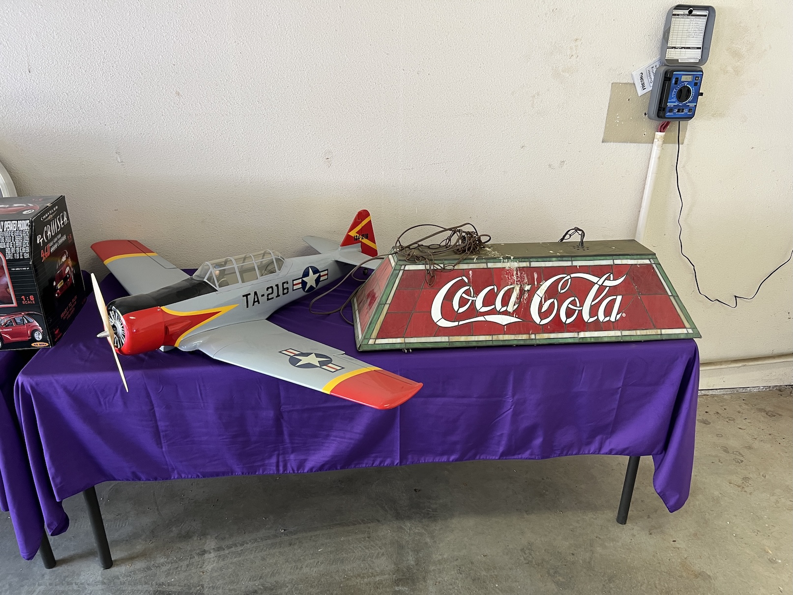 This weeks 2nd sale will knock your socks off beginning with a 14 foot metal giraffe sculpture that is being auctioned at merlins-auctions.com and the tag sale includes: a baker’s pride pizza over model gp51, perfect flame stainless steel bbq, dining set with lucite chairs, signed artwork, lucite desk, two 6 foot Christmas Soldiers, 6 foot pumpkin king, multiple neon advertising signs, two enormous urns, a number of patio sets with umbrellas, several vintage book sets, large model airplanes, designer leather couch and chaise lounge, vintage brass cash register, antique Burmese large wicker rice offering bowl and rice steamer, king and queen size beds, mid century furniture, large metal rooster, amazing large airplane painting, vintage table fan, bar stools, houseware and dining sets, Starbucks coffee cups, modern white leather cube style chairs, antique piano with amazing wood carving, garden tools, ladders, large remote control pt cruiser in box, vintage audio equipment and lots of decor and much more!